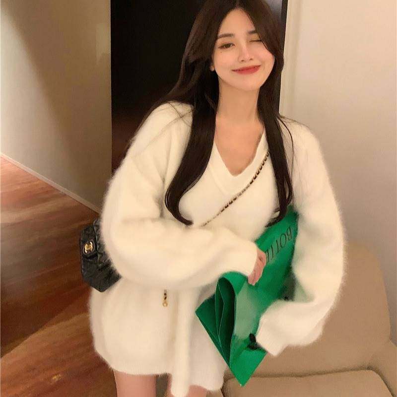 早秋仿貂毛绒毛衣套头V领设计感小众中长款慵懒风外穿针织衫上衣热门设计联盟服务商