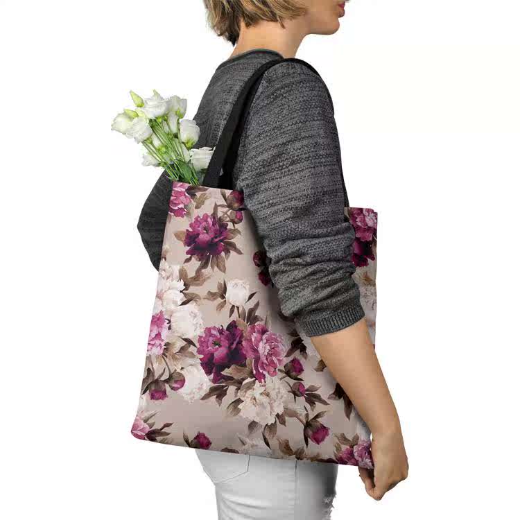 米底紫花单肩包帆布包数码印花手提单肩自习购物袋包礼品袋定logo热门设计联盟服务商