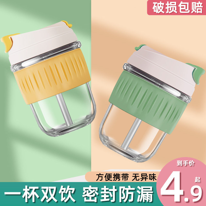 玻璃水杯女便携咖啡杯可爱夏季带吸管大容量随行杯子设计感小众热门设计联盟服务商