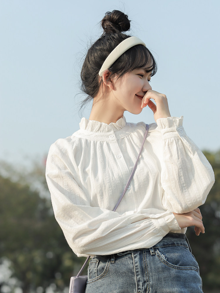 木耳边衬衫女设计感小众2021春秋新款白色长袖衬衣内搭打底上衣热门设计联盟服务商