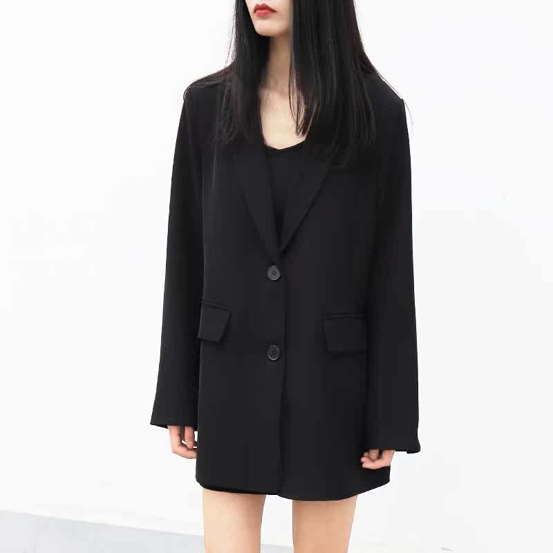 黑色西装外套女宽松设计感小众2021秋季复古休闲垂感长袖西服上衣热门设计联盟服务商