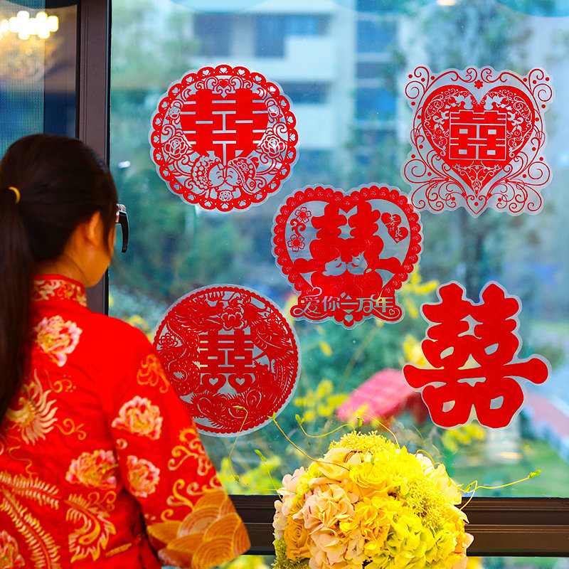 结婚窗贴用品大全婚车贴婚庆房门婚房装饰布置窗户喜字贴专用门口热门设计联盟服务商