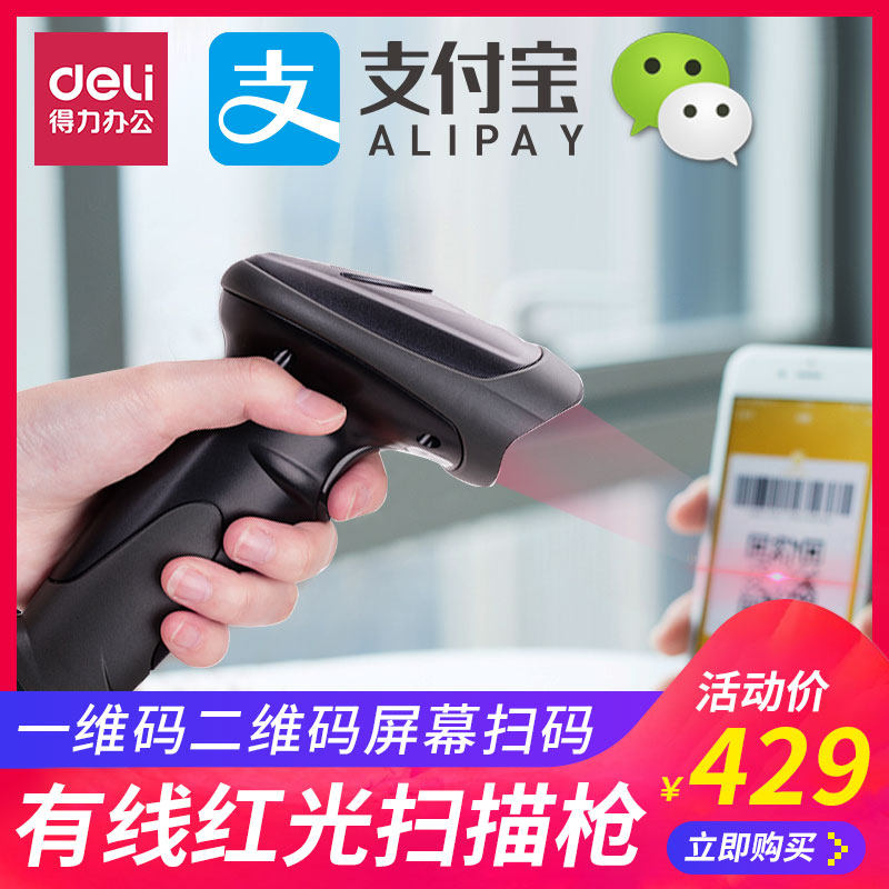【顺丰包邮】得力14883扫码扫描超市收银支付宝微信收款把抢条码扫码器有线一维二维影像商品条码扫码热门设计联盟服务商