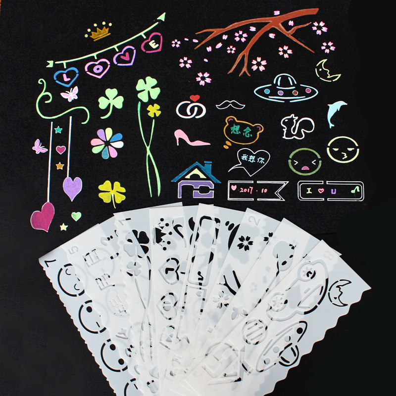 手抄报模板塑料尺子镂空花边尺儿童学生绘画素材手帐纪念册相册热门设计联盟服务商