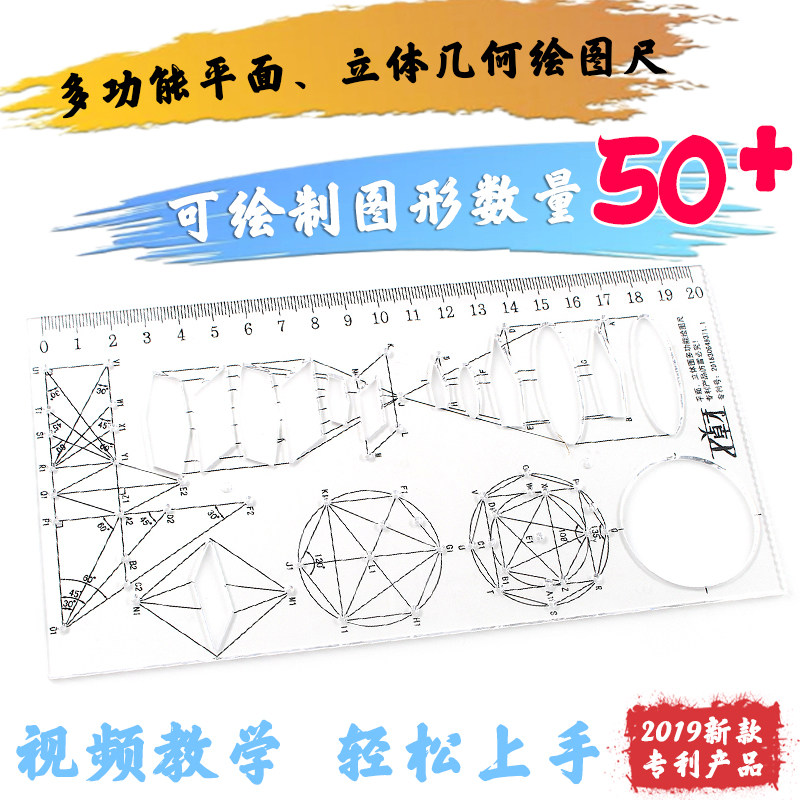 多功能绘图模板尺 平面立体几何图形绘图尺 高中学生考试画图工具热门设计联盟服务商