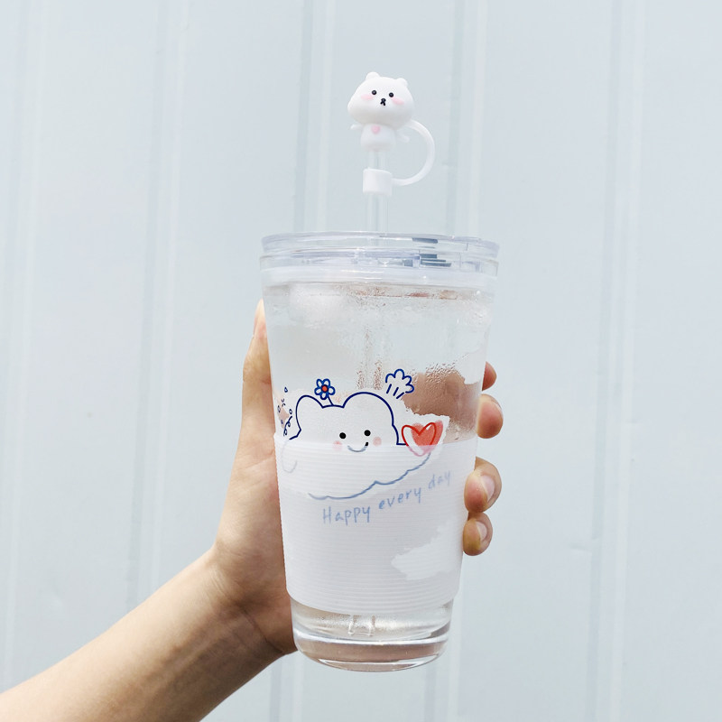日系云朵可爱卡通玻璃杯小清新少女吸管杯耐热大容量果汁杯茶水杯热门设计联盟服务商